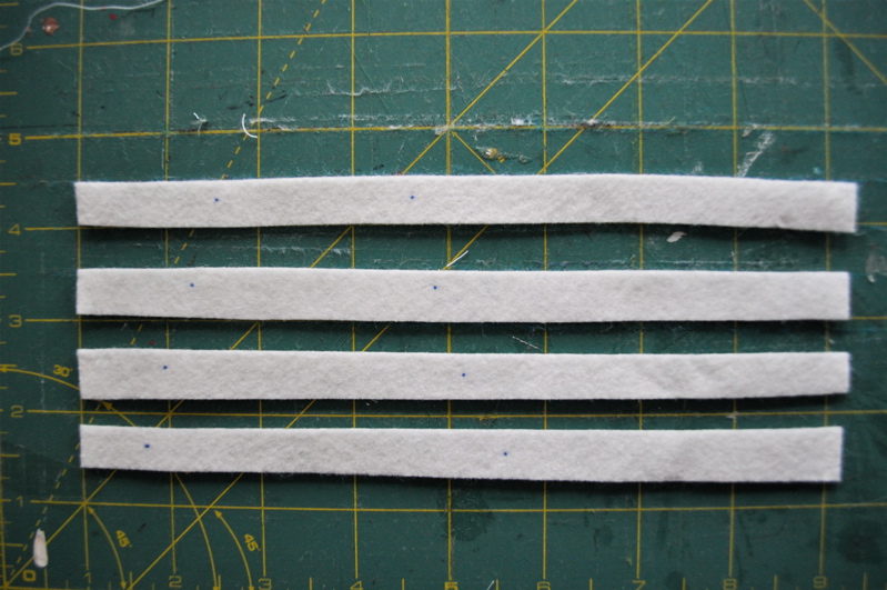 First cut your felt into four 8 x 1/4 inch long strips. Line them up nice and neat like I have below.
