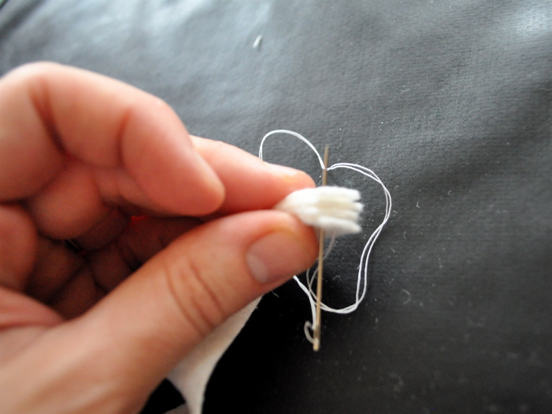 Next line up all the first dots you made and sew a few stitches to secure them together. You’ve just made the dove’s head.