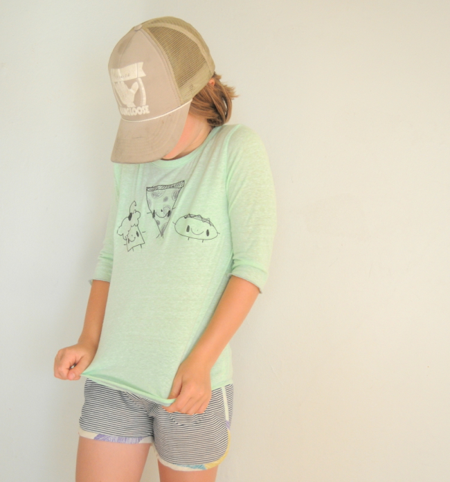 I lóve the drawing on the shirt! And my, these racer shorts are super cute… I had the same shorts in mind as PJ shorts for my daughter and now that I’ve seen yours I’ll be making them for sure!