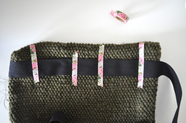 Volia! A knitted tote with twill tape handles! If this seems like this tutorial is a little loosey-goosey, it’s because it’s meant to be. This bag doesn’t have to be made in exactly these measurements with exactly this stitch. I think it would be lovely with a giant cable going up the front, or done in a herringbone stitch, or heck it could even be crocheted! I think what is striking about this bag is the contrast of textures: the smooth black twill tape against the pebbly knitted fabric.