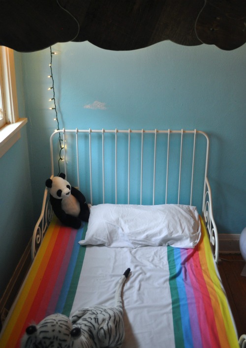 Rainbow sheets: now on my thrift store hunting list! Can’t wait to see what you do to the room.