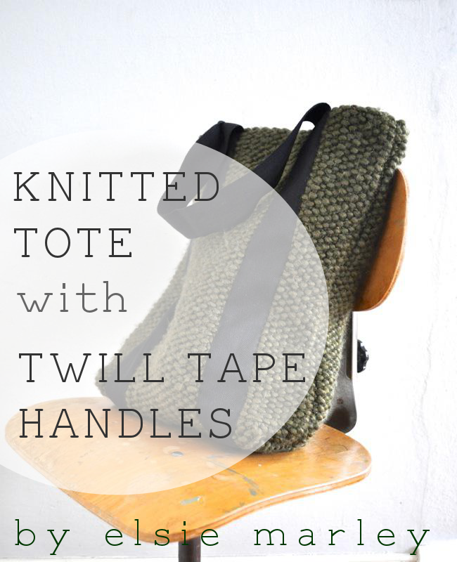 knitted tote with twill tape handles